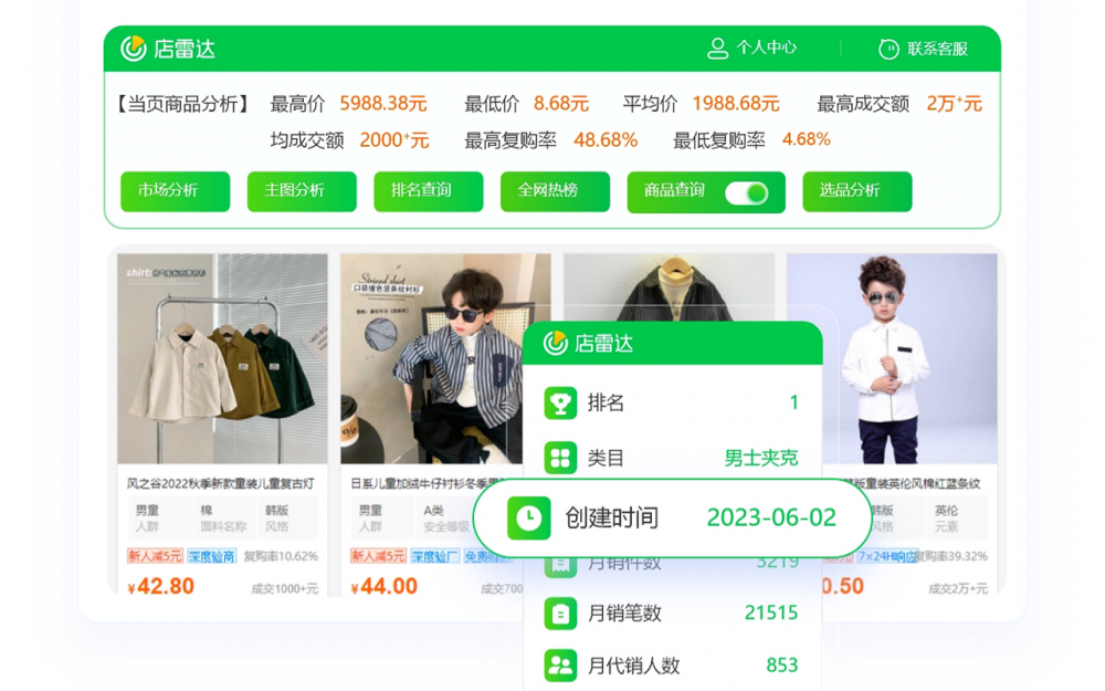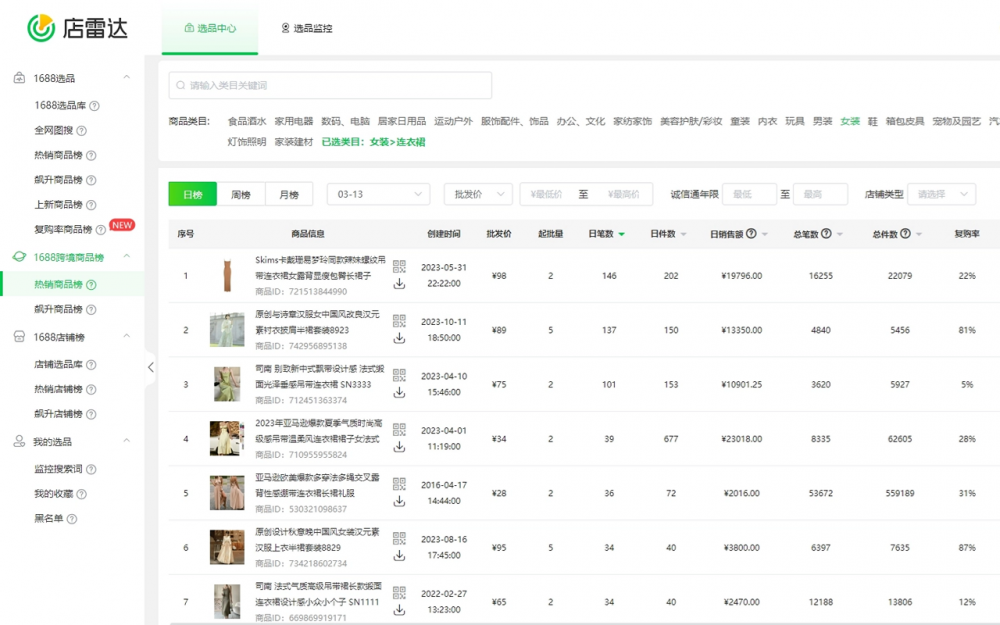 1. 店雷达1688选品库拥有亿量级的商品和百万级店铺助力电商卖家找对品,选好品;从而及时跟进市场需求。