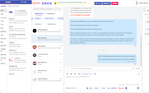 如果您喜欢,请给个好评。 提高速卖通客服及运营效率: 1. 一键翻译。 2. 高效模版功能。 3. 一键查询物流并回复。 4. 客户管理功能。 5. 待办事项