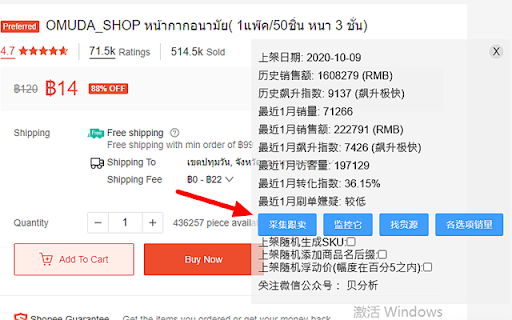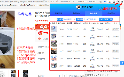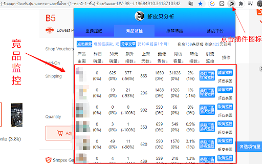 1. Easy to use: After registering the shopee spot distribution platform (erp.shopsbu.com), you can log in to the BeiAnalysis plug-in, and manually refresh (press F5) on any product details page in the shopee front desk to see product-related data: