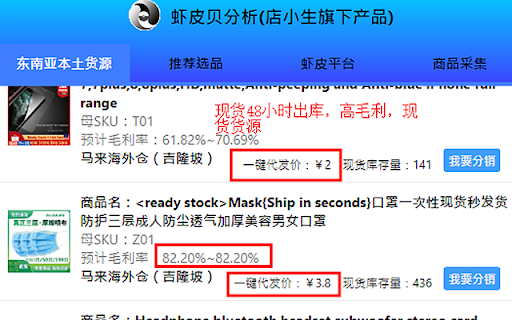 目前在马来、泰国、菲律宾、印尼、越南等东南亚国家当地有充足的现货货源(注册登录网址:erp.shopsbu.com)