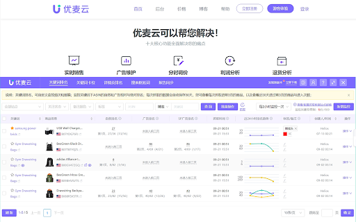 优麦云插件,可以帮卖家自动监控关键词排名、关键词卡位、详情页排名以及自动同步业务报告,及时发现流量变化,调整运营策略。