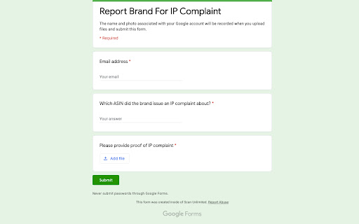 Official chrome extension from Scan Unlimited, Inc. The extension alerts you if a brand is known for filing IP complaints. When opening an Amazon product detail page, a warning symbol will appear there is an IP alert. Protect your seller account with the Scan Unlimited chrome extension!