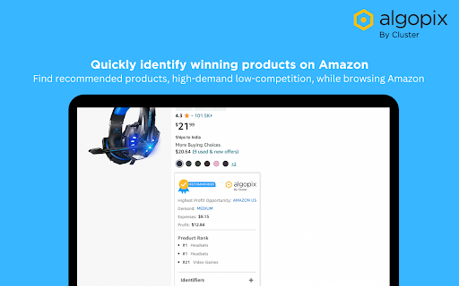 Algopix is the ultimate chrome extension for online sellers looking to identify profitable products with low competition while browsing Amazon. Algopix Extension provides data on pricing history, demand, and competition levels, so sellers can make informed decisions on product pricing. It also gives insights into the various platform fees, ranking history, sales performance, product identifiers, and shipping dimensions. This wealth of information helps sellers make sure they choose a product that will give them an edge in the marketplace. Make your product research process simple, identify winning products on Amazon. Download now!