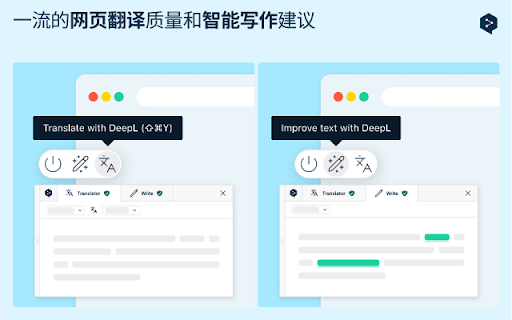 无需离开浏览器,即可随时了解最新资讯、更智能地工作并实现全球沟通。 DeepL 凭借其无与伦比的准确性和流畅性,确保日常工作中准确且高效的沟通,为全球数百万用户所信赖。此外,还提供最高级别的数据安全保措施。 易于操作,无可匹敌! DeepL 扩展可无缝集成到您的工作流程中,从而节省了耗时耗力的人工操作。 无需在不同标签和应用程序之间来回切换,从而提高工作效率。 只需点击几下或使用自定义快捷键,DeepL 扩展就能帮您实现: 浏览时翻译 用您最熟悉的语言阅读并随时掌握最新信息。通过 DeepL 扩展,您可以: - 翻译所选文本 - 翻译完整网页(使用 DeepL Pro 可无限量翻译) - 自动翻译网页(仅限 DeepL Pro) ✍️ 获取电子邮件和文档的翻译和写作帮助 为了提高您的工作效率,DeepL 已集成到 Google Workspace 中,可在 Gmail、Google 文档和 Google 幻灯片中直接提供翻译和写作帮助。 阅读和撰写电子邮件,创建和编辑各种文档,包括论文、演示文稿和报告。根据受众、目标和标准即时调整作品: - 使用备选译文方案和内置词典在熟悉的应用程序中进行翻译 - 获得文本更正和建议,以符合受众的风格呈现清晰的文本 - 在翻译文档时应用企业、行业或客户术语表(仅限 DeepL Pro) 与其他平台集成 DeepL 还可集成到 YouTube、WhatsApp、LinkedIn 和 X 等应用程序和平台。 通过即时翻译和写作帮助,与同事、合作伙伴和员工保持联系并高效交流: - 根据您的目标和受众发送清晰的回复 - 及时、有针对性地与多语言社区互动,扩大业务范围 DeepL 可提供 30 多种语言的互译功能,并为 5 种以上的语言提供人工智能写作支持。更多语言敬请期待。 关键信息 计划 DeepL 扩展的免费版本有字符限制。 此外,部分功能(如术语表或自动网页翻译)仅限 DeepL Pro 和 DeepL Write Pro 用户使用。 进一步了解 DeepL Pro 和 DeepL Write Pro 的所有优势,并找到适合您的计划:deepl.com/pro 数据安全 您的数据安全是我们的首要任务。根据我们在 deepl.com/zh/pro-license 上的条款和条件,没有您的同意,DeepL Pro 和 DeepL Write Pro 绝不会存储或使用您的内容来改善我们的服务。因此,您可以安全地翻译和润色包含个人信息的内容。然而,我们服务的免费版本可能会使用提交的内容来改进 DeepL 算法,供所有用户使用。因此,用户不应通过免费版处理任何机密 信息或个人数据。进一步了解我们强大的安全措施和隐私保护承诺,请前往 deepl.com/zh/pro-data-security 利用 DeepL 的语言人工智能平台重塑商务沟通 进一步了解我们的解决方案:deepl.com/zh/whydeepl