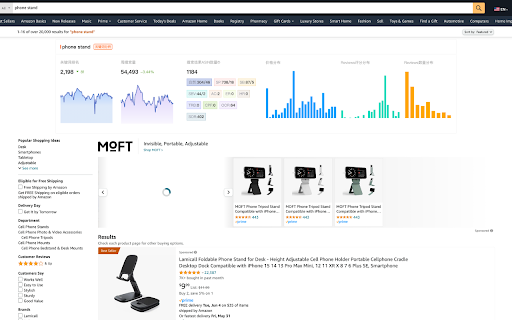 插件核心功能: 1、查看关键词数据 ——关键词排名 ——关键词周搜索量 ——关键词搜索结果ASIN数量 ——价格分布 ——Reviews评分分布 ——Reviews数量分布 2、查看每个ASIN流量情况 ——7天流量值得分 ——自然流量值得分、广告流量值得分 ——自然搜索词数量、广告搜索词数量 ——类目排名 ——7天展示量 ——该关键词的流量占比 ——自然流量和广告流量占比 ——流量趋势 ——关键词排名小时趋势和每日趋势 ——修改标题、主图等运营事件追溯 3、一键返回官网进行ASIN反查 流量诊断仪、流量洞察、广告洞察、流量周报、广告金主榜、广告放映机、自然放映机等更多好用关键词功能,可前往官网查看。