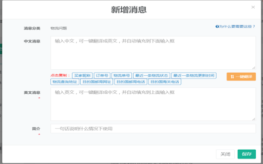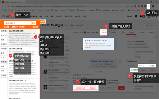 速卖通买家消息快速回复、多店铺通用消息模板、谷歌自动翻译、一键开发票、最新物流信息自动获取、自定义消息模板参数等功能