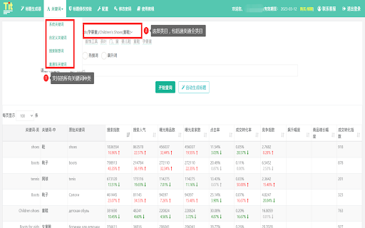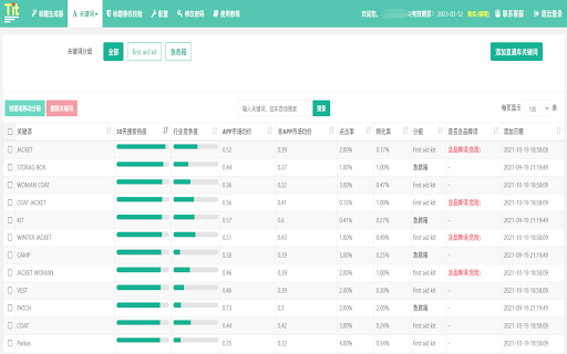 批量生成标题,支持英语、俄语、法语、西班牙语、葡萄牙语等小语种标题,支持长尾词、类目词、属性词、飙升词、流量词、搜索联想词、直通车热搜词、自定义关键词等功能。