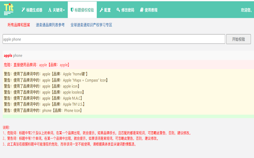1、在速卖通、店小秘、马帮上发布产品时,自动生成标题; 2、支持小语种关键词和标题生成; 3、一键查询长尾词、类目词、属性词、飙升词、流量词等; 4、支持选词专家、搜索联想词、直通车关键词、自定义关键词; 5、按照多种模式自动生成标题,每次可生成不一样的标题; 6、批量生成标题; 7、自定义配置,是否过滤掉品牌词,防止侵权。