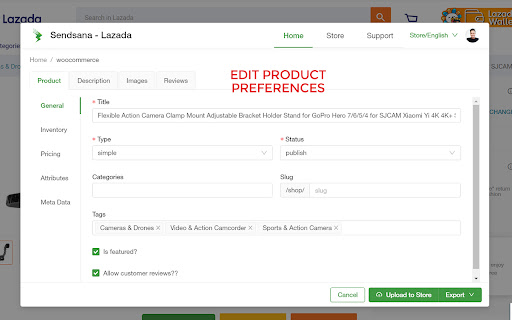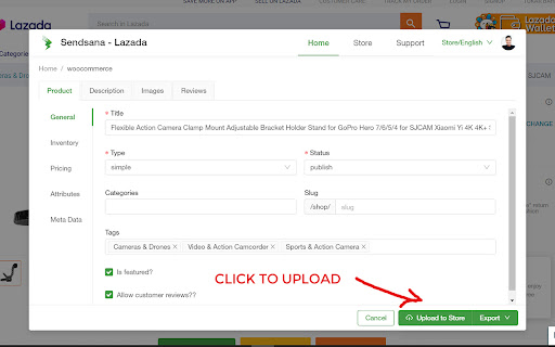 Sendsana Lazada is a great tool forecommerce store owners either using woocommerce or shopify to import products from LAzada right into their site with just 1 click. They are capable of importing all product related information including title, description, attributes, product preferences, reviews and others. Before importing to their store, users can make edits to what they want to move. Then click the export button to move to the selected store. After being moved to the woocommerce store & shopify store, the website owner can still edit the product settings as appropriate. More features will be included later. Make sure you have a valid license from the official https://sendsana.com website