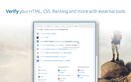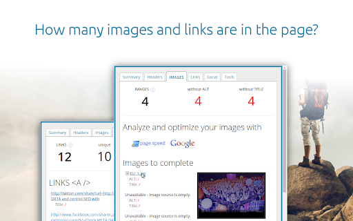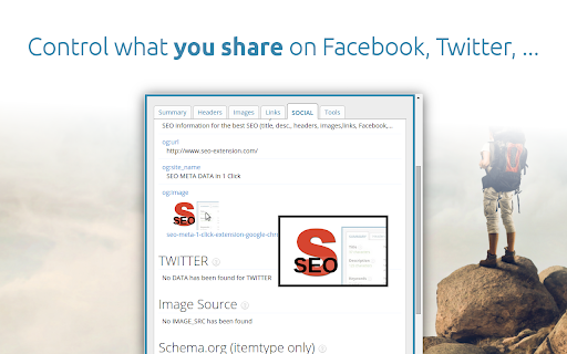 Displays all meta data and main SEO information for the best SEO