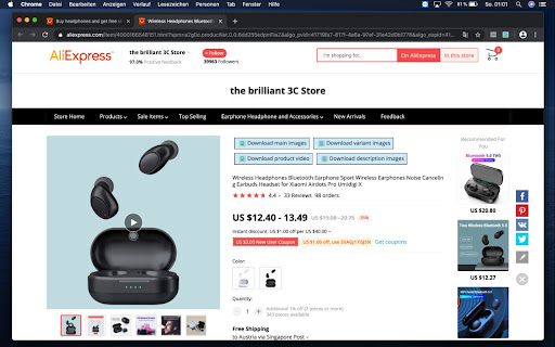AliDownloader is a browser extension that enables you to quickly get product main, variant, description and feedback images from AliExpress, including product videos! It also offers live editing of images before download. Download AliExpress Product Images in 3 Easy Steps 1. Get and install AliDownloader 2. Search for your product on AliExpress. 3. Click and get the chosen product images to your computer. It’s as simple as that! Features If you’re into ecommerce and dropshipping products from AliExpress, here’s why you should install Alidownloader Extension today. -> Get Product Videos Videos are very important when it comes to your online store conversion and performance. Use this tool to get videos. -> Download Main Product Images Sellers on AliExpress upload several images for their products. Click on the download icon to get all main product images for that product. -> Live Edit of Product Images Easily remove logos from product images. No more worrying about unnecessary elements in the product image. -> Zip all Images This extension enables you to neatly organize all your downloaded images in a zipped folder – all organized according to product and ready to go!