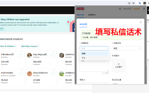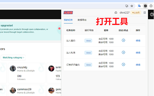 达探星TikTok自动邀约助手,实现自动化邀约和私信达人、自动提报商品机会,发送商品卡、买家好评、提升商家邀约达人效率, 提高商品评分,提高流量转化,24小时不间断邀约,安全可靠稳定!