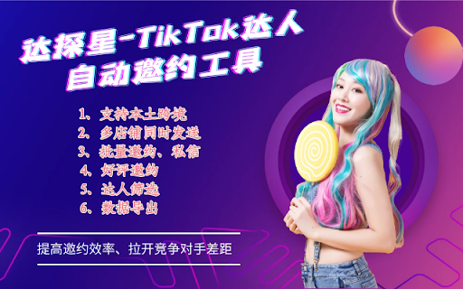 达探星-TikTok自动邀约助手,TK达人邀约工具、实现自动化邀约和私信达人、发送商品卡、买家好评、批量发送邮件、精准达人标签、自动提报商品机会、提升商家邀约达人效率,提高商品评分,提高流量转化,24小时不间断邀约,安全可靠稳定!