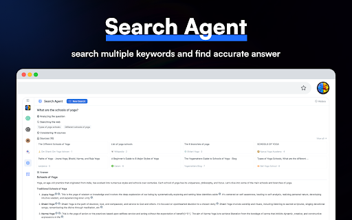 Display intelligent answers from leading AI models alongside your search engine's general results. Enhance your browsing experience with AI! AI Chat for Search is an extension that shows AI responses alongside Google, Bing, DuckDuckGo, and other search engines. Compared to the scattered and chaotic information from search engines, our AI has already summarized and categorized this information for you, allowing you to see the results you want more intuitively. Moreover, you can ask further questions based on the AI responses to gain a deeper understanding of the topic. The Key Features: Search Enhance: Obtain concise, accurate answers to your questions right within the search engine interfaces you already use. Search Agent: Just ask a question, and AI Chat for Search will search using multiple keywords, review all the results, and find the right answer for you. All-In-One-Chat: Compare the answers from several powerful AI models on one page to enhance your search experience. Quick Ask: Enter "gpt" in the browser address bar, then press "Tab" or "Space" to enter quick ask mode. In Quick Ask mode, enter your query and hit "Enter" to instantly send it to your selected AI model. How AI Chat for Search Outshines the Competition? ✔️ Supports all popular search engines: Google, Bing, DuckDuckGo, and other search engines. ✔️ Supports connections to official APIs (including advanced and turbo models). ✔️ Markdown rendering ✔️ Code highlights ✔️ Dark mode ✔️ Custom trigger mode ✔️ Custom content text size ✔️ Supports 50+ languages — ❓ Frequently Asked Questions: What is AI Chat for Search? AI Chat for Search is a browser extension that enhances search engines with the power of advanced AI. It works by showing AI-generated responses alongside normal search engine results. Is AI Chat for Search free to use? Yes, we offer limited use for free. For unlimited access, you can choose the Premium Plan. What search engines are supported? Currently, AI Chat for Search supports Google, Bing, DuckDuckGo, and other search engines. More search engines will be supported in the future. Do I need an account with an AI provider? AI Chat for Search offers two usage modes: a free mode and a subscription-based mode. In the free version, users can utilize the search enhancement feature by either signing into their personal account with an AI provider or by applying their own API key. Conversely, the premium mode allows users full access to all features without the need for any external API keys or accounts.