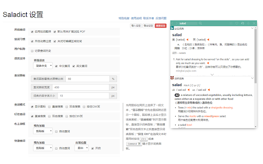Saladict 沙拉查词是一款专业划词翻译扩展,为交叉阅读而生。大量权威词典涵盖中英日韩法德西语,支持复杂的划词操作、网页翻译、生词本与 PDF 浏览。