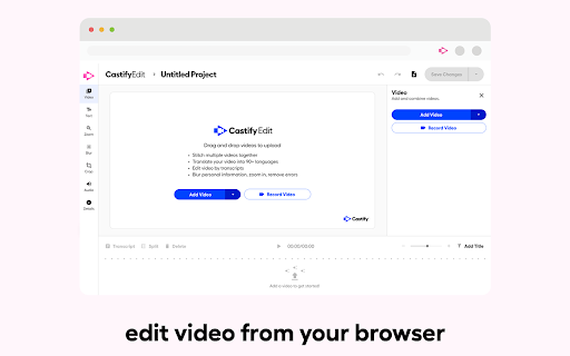 An easy-to-use screen recorder for Chrome. Capture, edit and share videos in seconds. Screencastify, now part of Castify is Chrome's simplest free screen recorder and interactive video platform, empowering anyone to become a better communicator by recording, editing, and sharing videos in seconds. Plus, easily turn any video into an assessment by adding Interactive Questions. With Screencastify, use simple yet powerful screen recording tools to: ▸ Record your desktop, browser tab, and/or webcam ▸ Edit video from your browser ▸ Edit YouTube videos ▸ Translate and add voiceovers on any video in 90+ Languages ▸ Share your video in multiple ways ▸ Add Interactive Questions to videos and see analytics to measure engagement ▸ Request video submissions with Submit Educators, professionals, and personal creators across the world use Screencastify screen recorder as a simple way to communicate more effectively through video. Join a massive community of video creators ✔ Millions of weekly users ✔ Hundreds of millions of videos recorded ✔ Incredibly easy to learn and use Create engaging videos with our easy-to-use screen recorder ▸ Record your browser tab, desktop, and/or your webcam ▸ Narrate with your microphone’s audio ▸ Embed your webcam into the recording ▸ Annotate in real time to highlight key points ▸ Add captions to make your video more accessible ▸ Add questions to check viewer comprehension ✂️ Simple video editing ▸ Trim the start and end of your videos ▸ Draw on your tab with the pen tool ▸ Merge, crop, and add text to videos Share with your audience, wherever they are ▸ Share directly from Screencastify ▸ View and share videos on Google Drive ▸ Share to Google Classroom ▸ Export as MP4, animated GIF, or MP3 ▸ See who has viewed your videos ▸ Translate the captions on your video into 50+ languages Available free ▸ Create your first 10 videos free or upgrade for unlimited video creation ▸ Record videos up to 30 minutes for free ------------------------------------------- How do people use Screencastify to communicate more effectively? Education ▸ Create instructional videos to engage your students ▸ Add Interactive Questions to turn videos into assessments ▸ Personalize learning by creating differentiated videos for each level ▸ Embrace flipped classrooms or blended learning with video lessons ▸ Have your students practice foreign languages or public speaking ▸ Empower student video creation with Submit assignments ️ At Work ▸ Eliminate emails or meetings in favor of more effective, async communication ▸ Create performance review videos for coworkers ▸ Share engaging messages with your customers, users, and colleagues ▸ Create training and onboarding videos that captivate your employees ▸ Cancel meetings by sharing video instead Everyday creators ▸ With millions of weekly users, we’ve helped creators share countless ideas for videos to life - from professional YouTubers to personal trainers and attorneys to UFO hunters. What are you waiting for? Install Screencastify and inspire the world with your video communication. ------------------------------------------- Specs: ▸ Screencasts are captured as webm/vp8 files with ogg vorbis audio ▸ Videos can be saved to your local disk as various file types (GIF, MP4, etc), directly to your Google Drive, or you can simply share the link ▸ Screencastify screen recorder does not depend on any external software (like Java, Flash or other plugins) so it runs on Chrome OS, Chromebooks, and Chromeboxes ▸ Screen recording is a CPU intensive task. Older or weaker computers may lag if multiple programs and tabs are open at the same time as a screencast Info / Contact Us: ▸ Twitter: @Screencastify ▸ Support Docs: https://learn.screencastify.com ▸ Tech Support: support@screencastify.com