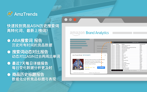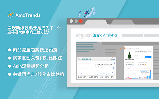 AmzTrends 5.0 版本更新说明: ①:插件已更新至谷歌V3版,支持最新版本的谷歌浏览器。 ②:Amz123热搜词—>「划词」查看关键词词趋势。 ③:Amazon.com搜索栏—>点击「查看趋势」直接查看趋势。 ④:亚马逊商机探测器新网址已适配,可查看「搜索词」「商品」趋势。 ⑤:亚马逊品牌分析、广告、业务报告、商机探测全部适配。 ⑥:Amazon.com的搜索结果、类目、商品详情全部适配。 ⑦:新用户请通过邮箱注册后,绑定手机号可验证码登陆。 ⑧:如果登陆时无法收取到短信验证码,请联系AmzTrends(微信号) ⑨:AmzTrends.com已支持在线账号续费和付款。